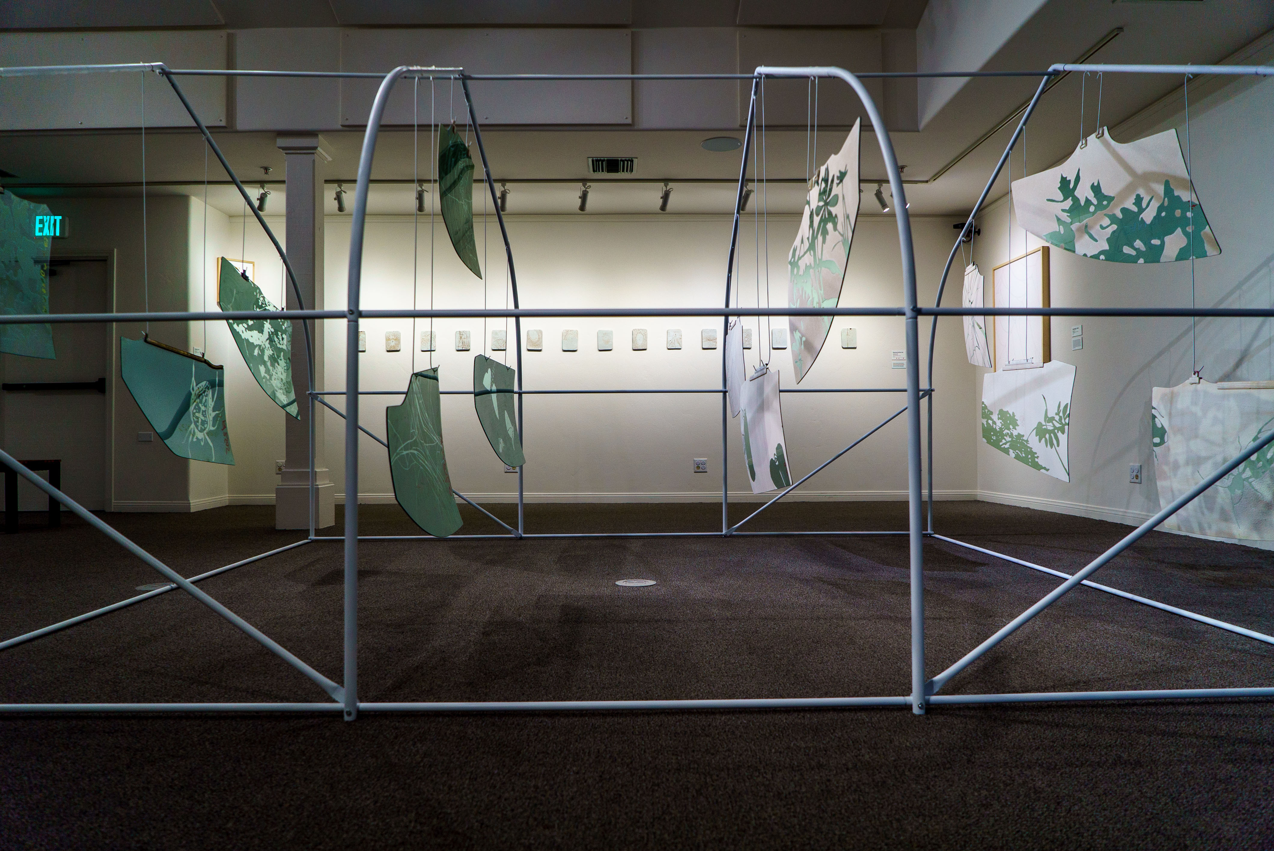 Suspended in a structure are hand-drawn pollinator insects on porcelain clay-coated car windows. They serve as both screens and reflections of a transformed landscape. The clay is not fixed and can be washed away, redrawn with new subjects. This work explores how human and industrial impacts alter our perception of nature and its vitality and how all creatures are intimately tied together.